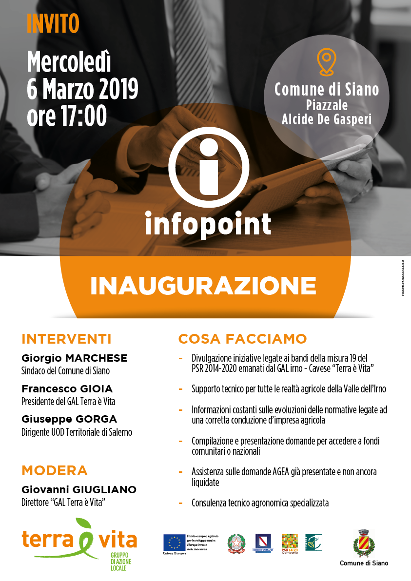 Mercoledì 6 marzo presso il Comune di Siano e venerdì 8 marzo presso il Comune di Vietri sul Mare si terranno le inaugurazioni degli Info Point del GAL Terra è Vita.