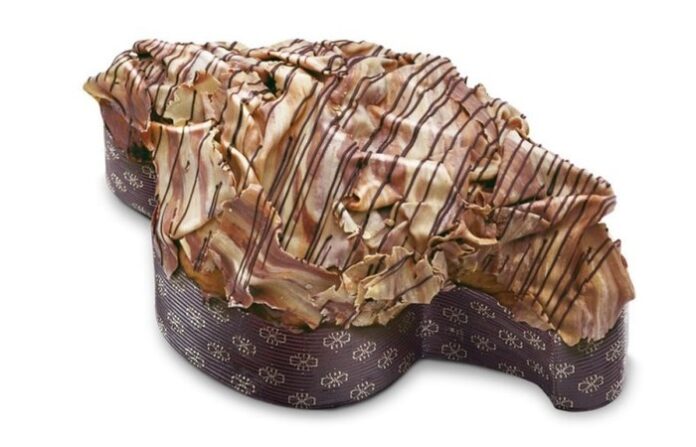È nata così la colomba ai “Tre Cioccolati”, farcita con crema al gianduia e gocce di cioccolato bianco, latte, fondente e nocciola.