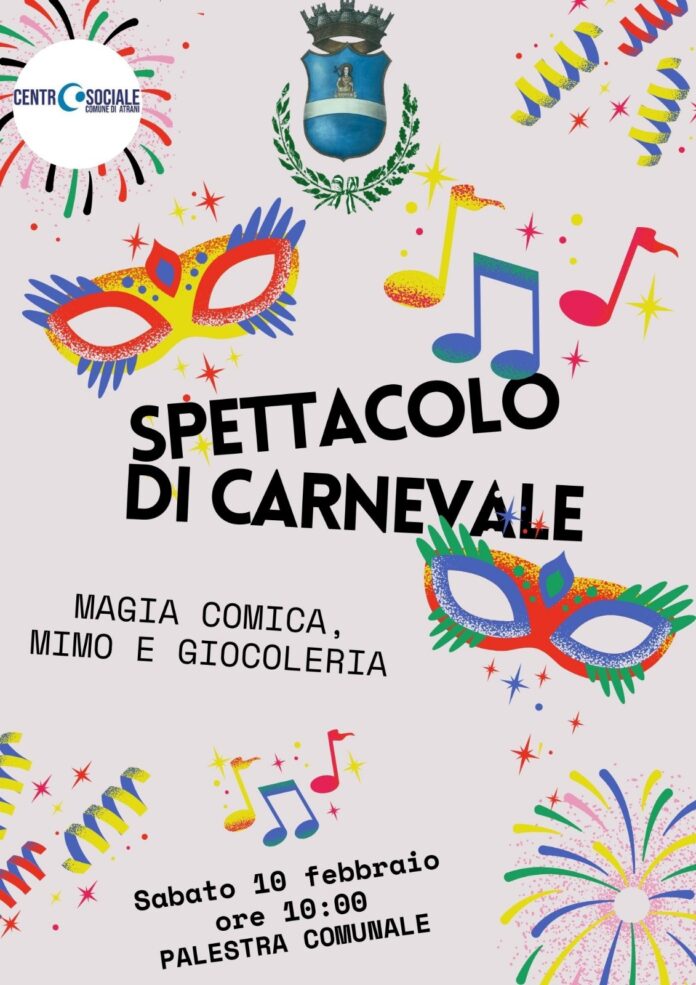 La festa ad Atrani avrà inizio sabato 10 febbraio, a partire dalle ore 10, quando la palestra comunale diventerà il centro propulsore dell’allegria: maschere, giochi, magia, mimi ed altre attività organizzate dal Centro sociale comunale “G. Cavaliere” coinvolgeranno grandi e piccini nell’incantesimo senza tempo del Carnevale.