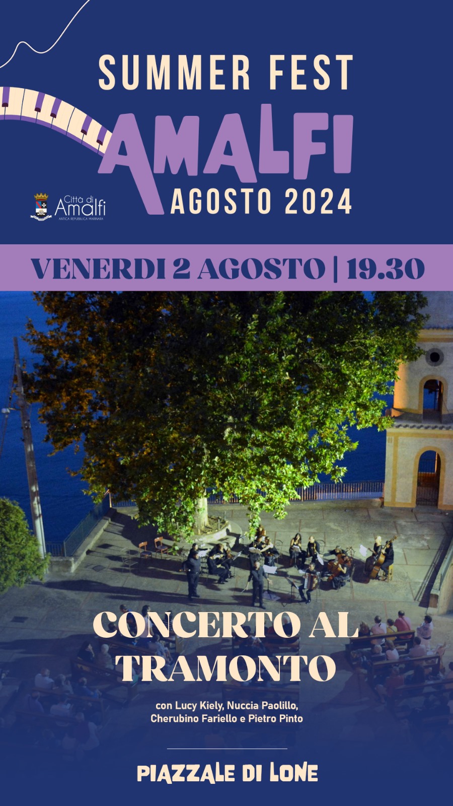 «Si apre il mese di agosto all’insegna dei grandi eventi per Amalfi Summer Fest, dopo il successo dell’edizione 2024 di Amalfi in Jazz.  – insiste la delegata alla Cultura e agli Eventi, Enza Cobalto – Il Concerto al Tramonto è un grande cult della Costa d’Amalfi, che quest’anno si spinge ancora oltre, coniugando il pop internazionale e la grande canzone napoletana, in un recupero antropologico affinché non vada disperso. Avremo due protagoniste indiscusse, Lucy Kiely e la voce potente dell’attrice e cantante Nuccia Paolillo insieme: sarà uno spettacolo sublime ed inedito.  Ci saranno grandi classici del patrimonio artistico della musica napoletana, amata in tutto il mondo ed apprezzata dal nostro pubblico internazionale. Ma grandi slanci di bossa nova e latin jazz, con spinte funk contemporanee e soul, da Pino Daniele a Stevie Wonder.  Spazio anche alla memoria identitaria e antropologica attraverso il repertorio popolare ed etno folk, con la parte ritmica coinvolgente, in un variegato repertorio canoro e strumentale. Le frazioni più alte offrono meravigliosi balconi su Amalfi in uno spettacolo unico: un’occasione da non perdere, come sempre ad ingresso libero».