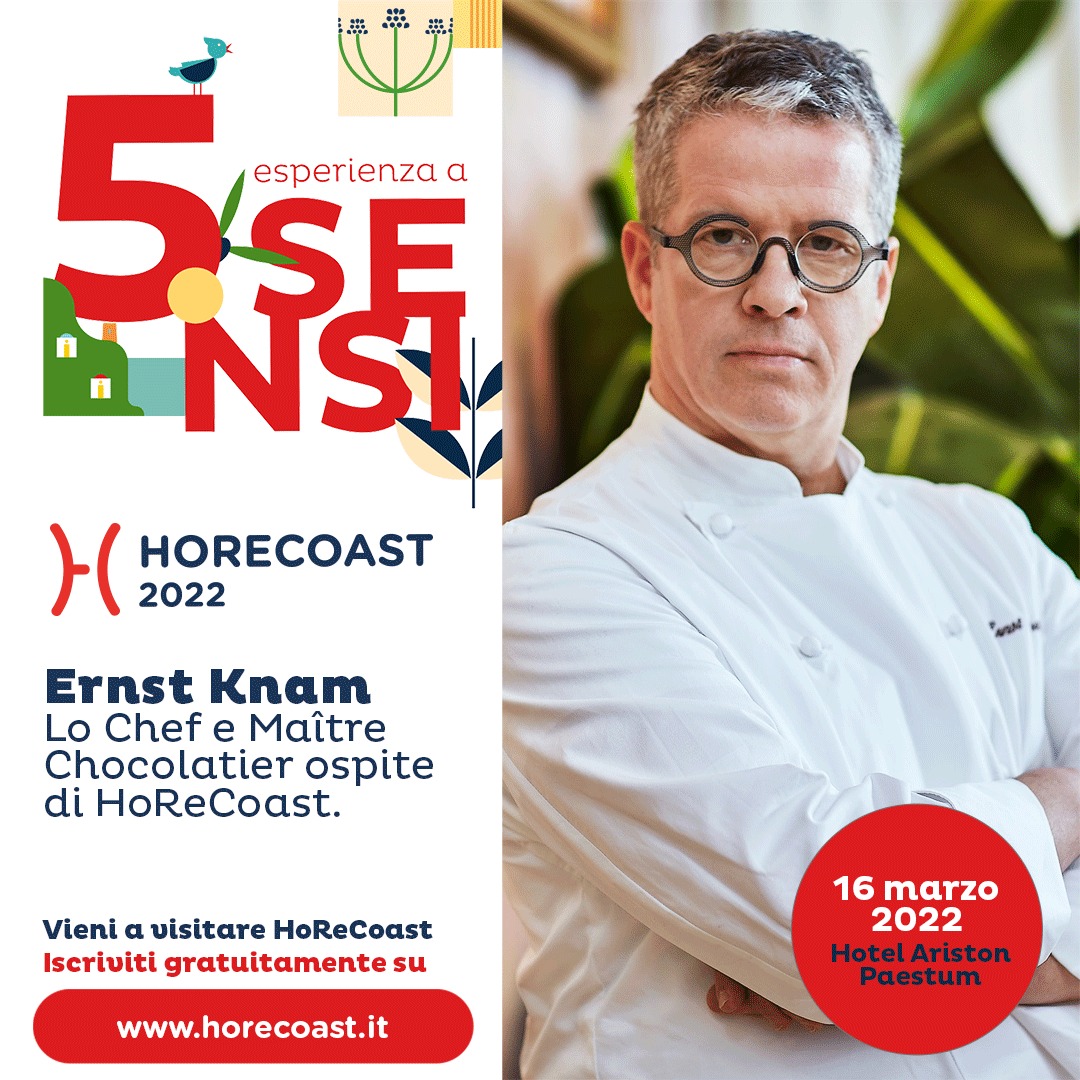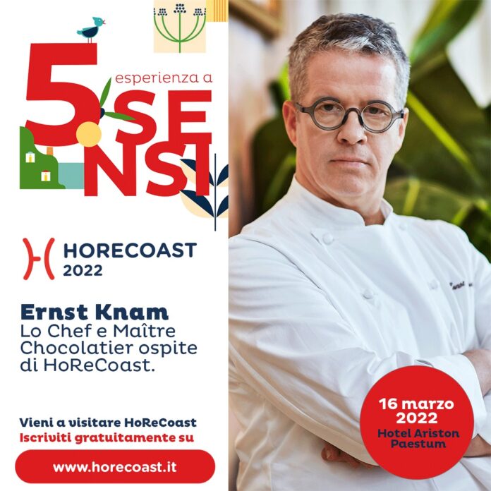 Mercoledì 16 marzo, alle ore 9.30, sarà il Maestro Pasticcere e Cioccolatiere Ernst Knam ad inaugurare l’edizione 2022 di HoReCoast, la fiera dedicata al mondo Ho.Re.Ca., che si svolgerà all’Hotel Ariston di Paestum (Sa) fino al 18 marzo (giornata, quest’ultima dedicata esclusivamente agli studenti degli Istituti Alberghieri).