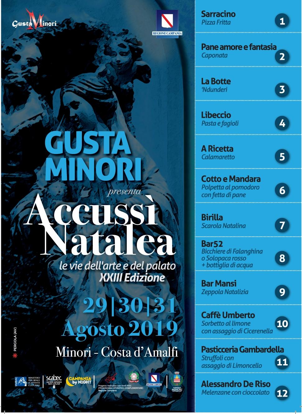 “Lungo le Vie del palato e nei ristoranti – ha continuato Porpora – sarà possibile gustare ad esempio la Pizza fritta, la Caponata, gli ‘Ndunderi, piatto tipico della tradizione pastaia minorese. Da non dimenticare che Minori è conosciuta nel mondo anche per la lavorazione della pasta artigianale. Ma ancora sarà possibile gustare la pasta e fagioli, pietanza tipica del Natale a Minori, il Calamaretto, la Polpetta al pomodoro, la Scarola Natalina, il Sorbetto al Limone con assaggio di Cicerenella, gli immancabili struffoli accompagnati dal Limoncello e le meravigliose Melenzane con il cioccolato. Attenzione perché il 29 Agosto a Gusta Minori avremo la Zeppola Natalizia ed il vino tipico della tradizione minorese.  La stampa potrà assistere alla lavorazione della pasta, del limoncello grazie a specifici tour che faremo durante la tre giorni del Gusta Minori. I menu della XXIII esima edizione sono stati coordinati da Luigi Di Ruocco, Presidente dell’Associazione Cuochi Salernitani che ha inoltre concesso il patrocinio. Attese migliaia di persone. Un grande evento che offre l’opportunità di far conoscere al mondo le tradizioni della Costiera destagionalizzata e che ha avuto tra gli ideatori Carlo Mansi, ai tempi in cui la stessa era organizzata dall’associazione commercianti, e che oggi ha assunto l’incarico di capofila delle attività. Siamo dinanzi ad un lavoro di coordinamento enorme che vede insieme: l’Associazione Gusta Minori corporation, il Comune di Minori e le attività commerciali di Minori. Sebbene nella necessaria autonomia che si è deciso di attribuire alle attività commerciali, l’Associazione ha fornito un vitale supporto affinché si riacquistasse una pari dignità tra le vie dell’arte e del palato”.