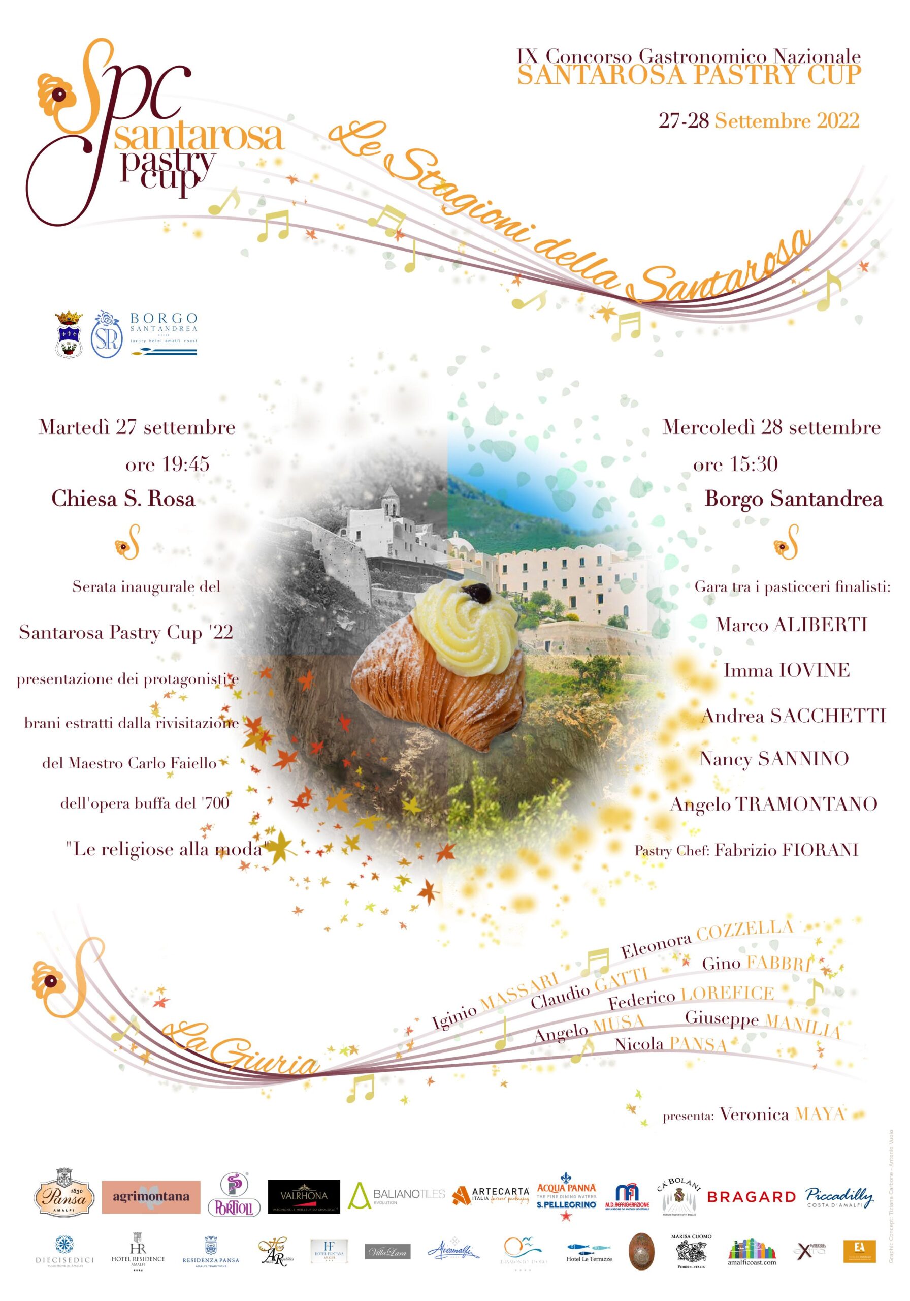 Nel suggestivo borgo di Conca dei Marini fervono i preparativi per ospitare la nona edizione del Santarosa Pastry Cup, kermesse che si è ritagliata negli anni una sua identità nel panorama degli eventi gastronomici nazionali. Il concorso nasce come tributo alla sfogliatella Santarosa, dolce creato proprio a Conca dei Marini nel XVIII secolo, nelle cucine dell’omonimo monastero di suore di clausura (oggi rinomato resort di lusso) che, dopo più di un secolo, ha ispirato la famosa sfogliatella napoletana. Ideato nel 2012 da Tiziana Carbone nell’ambito dell’A.L.O.E. (Associazione dei Liberi Operatori Economici), l’evento si è successivamente avvalso della collaborazione di Antonio Vuolo e Nicola Pansa della storica Pasticceria Pansa di Amalfi e del supporto dell’amministrazione comunale di Conca dei Marini.