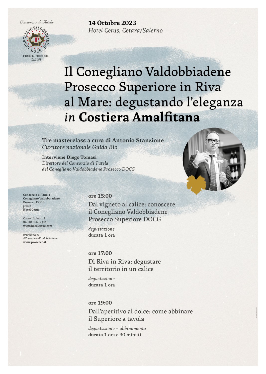 Il 14 ottobre il Consorzio di Tutela del Conegliano Valdobbiadene Prosecco DOCG si presenta per la prima volta a Cetara in provincia di Salerno presso l’Hotel Cetus per un pomeriggio dedicato interamente alla presentazione della Denominazione e delle sue caratteristiche.