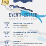 Si inizia venerdì 16 Luglio alle ore 22.00 con Beatrice Valente Quartet, un quartetto salernitano che propone un viaggio musicale attraverso le tipiche sonorità di New Orleans fino ad arrivare al calore di Rio de Janeiro, senza però trascurare le radici partenopee. Con Beatrice Valente al contrabbasso e voce, Ergio Valente al pianoforte, Rocco Sagaria alla batteria e Massimo Barrella alla chitarra.