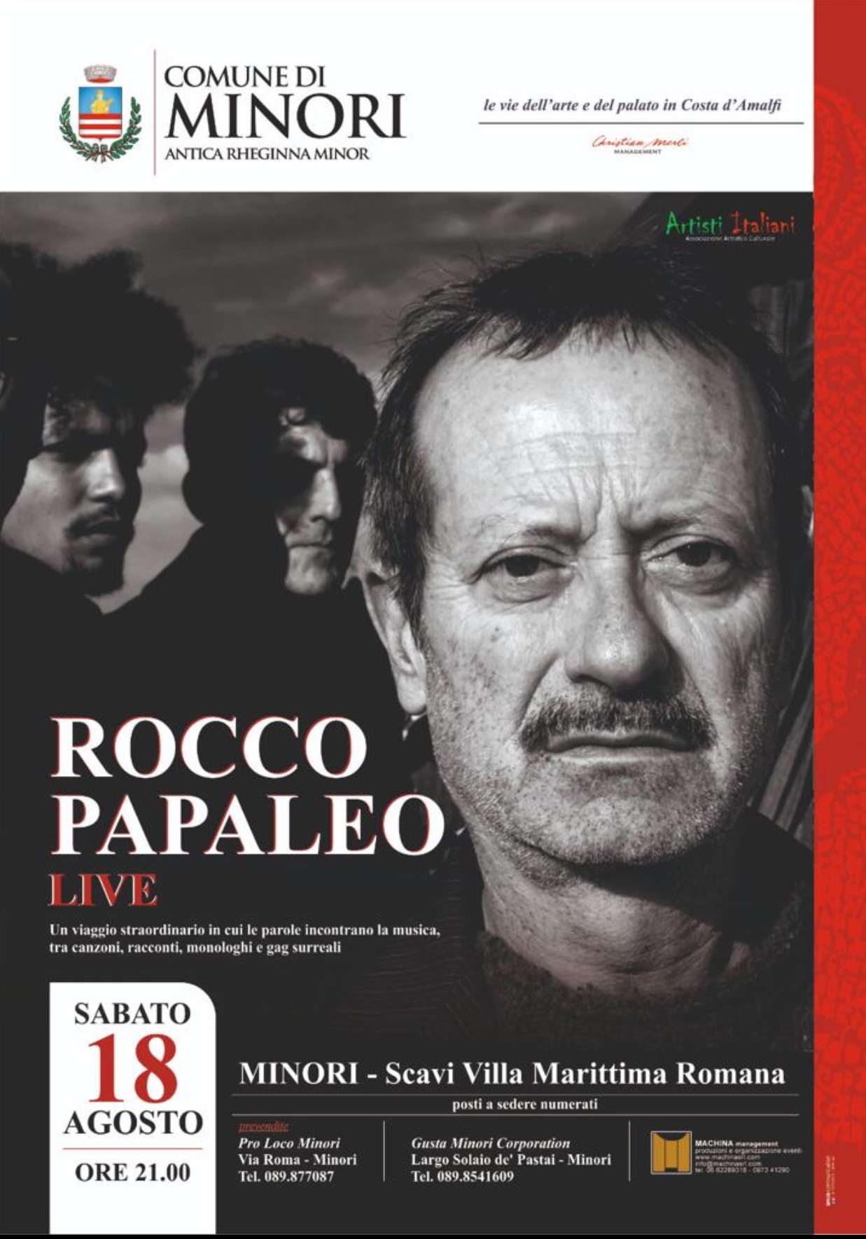La rassegna teatrale estiva della Costiera amalfitana giunge al terzo appuntamento. Nella suggestiva location degli scavi della Villa Romana sarà la volta dell’esilarante Rocco Papaleo, il 18 agosto, con il suo spettacolo di teatro canzone.