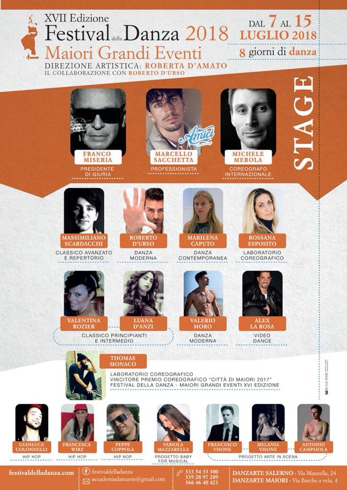 Si apre il Sipario sulla XVII Edizione, del Festival della Danza Maiori Grandi Eventi. Stage, Rassegne, Contest, Spettacoli e anche Concorso. Il Concorso è aperto a Solisti, Coppie e Gruppi coreografici di scuole di danza e compagnie emergenti.