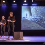 Una strana e insolita traversata del cuore dell’Inferno a cercare per poi salvare “diverse lingue, orribili favelle, parole di dolore, accenti d’ira, voci alte e fioche”. Le due voci narranti diventano, nel corso del cammino, un’unica voce per Dante, Virgilio e i personaggi di volta in volta incontrati. Una voce maschile e una femminile a raccontare – alternandosi e intersecandosi come due rette che nell’infinito spazio infernale si toccano e si lasciano con complicità, con movimenti curati da Virna Prescenzo – della selva oscura, dell’incontro tra Dante e Virgilio, dell’attraversamento della porta della città dolente, del limbo, dell’incontro con Caronte, dell’amore di Paolo e Francesca, della mostruosità di Cerbero, della politica di Farinata Degli Uberti, delle brutte Arpie, del dolce dolore di Pier delle Vigne, del coraggio di Ulisse di oltrepassare “l’oltre”, della disperazione di Ugolino.