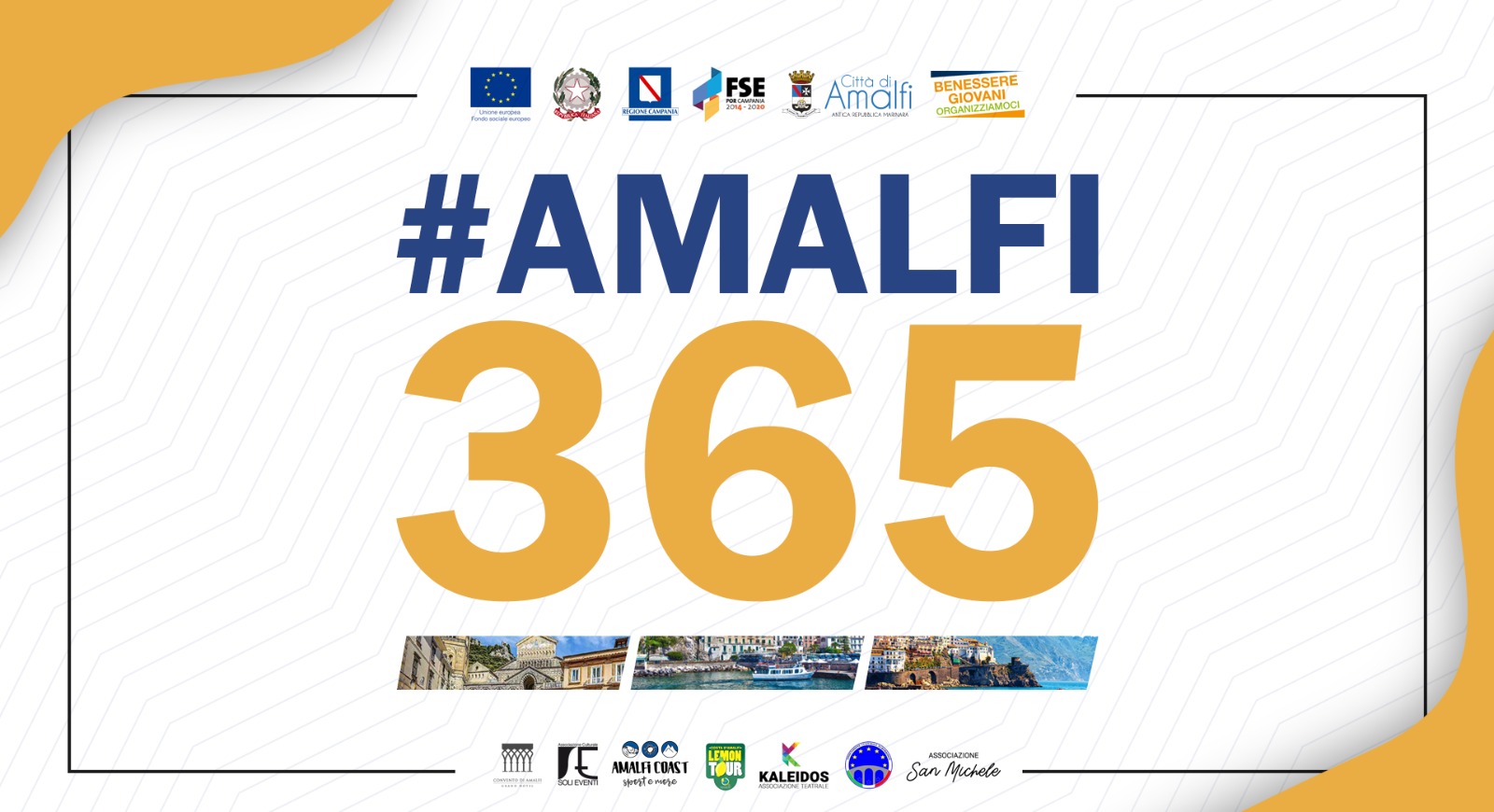 #Amalfi365 è il programma per giovani di età compresa tra i 16 ed i 35 anni, principalmente inoccupati che non lavorano né studiano e poi studenti under 35, nato per aiutarli ad accedere al mondo del lavoro. Sono stati attivati 5 differenti percorsi di formazione: acceleratore e incubatore di start-up, a cura dell’Azienda Agricola – Aceto Salvatore; percorso di promozione dell’offerta turistica a cura di NH Hotel Group; organizzazione di eventi sportivi, a cura della ASD Amalfi Coast Sport & More; “Alla riscoperta delle tradizioni” per la giusta conoscenza nella promozione e narrazione del territorio, a cura dell’associazione San Michele; accompagnatore turistico teatrale a cura dell’associazione teatrale Kaleidos. Per ogni laboratorio sono disponibili 25 posti e il percorso durerà 19 mesi. Prima ci sarà una parte di formazione, e poi, a seconda del tipo di corso scelto, ci sarà uno stage in azienda o una fase di accompagnamento alla creazione di lavoro autonomo. Vede impegnati oltre al Comune di Amalfi ed i curatori dei corsi, l’associazione SoliEventi e l’associazione di promozione sociale Eurobridge. Il progetto è stato realizzato con il cofinanziamento dell’Unione Europea all’interno del Por Campania FSE 2014 – 2020.