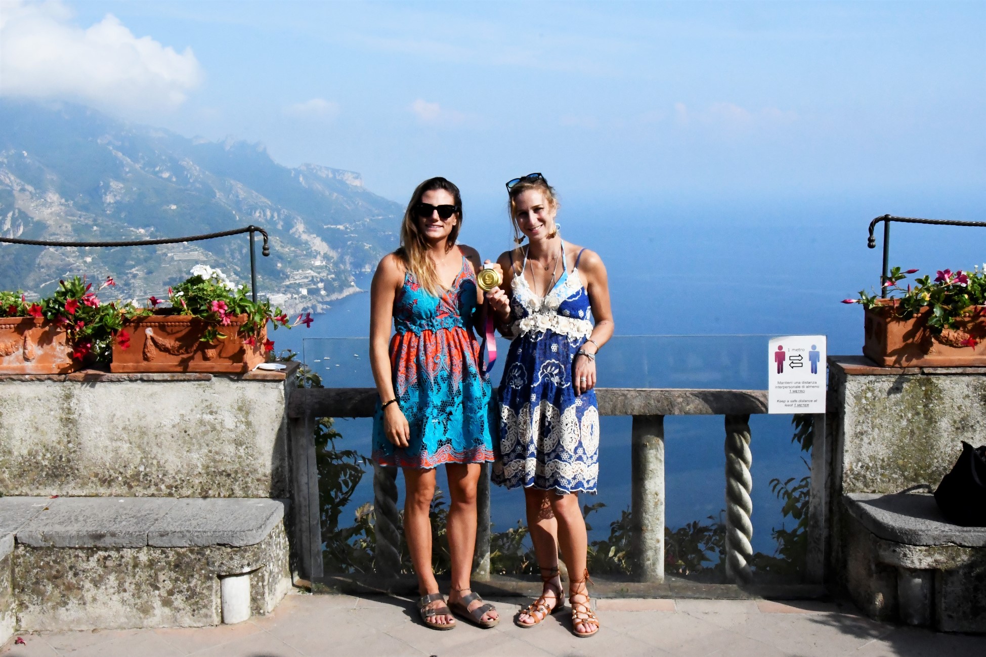 Le due campionesse si sono concesse un pomeriggio nella Città della Musica e hanno colto l’occasione per visitare il monumento simbolo di Ravello. Rapite dalla bellezza dei giardini e della villa, hanno trascorso qualche ora di relax senza sottrarsi alle richieste degli appassionati che le hanno riconosciute. “Passerei tutto il pomeriggio a fotografare questa meraviglia!” – ha detto la Cesarini – “Ritorneremo sicuramente per visitare con più calma Ravello e le sue bellezze” – le ha fatto eco la Rodini accompagnata a Ravello dal compagno Giacomo Gentili, anche lui canottiere azzurro, campione del mondo nel quattro di coppia nel 2018 e fresco campione europeo nella stessa specialità a Varese 2021, parte della spedizione a Tokio 2020.
