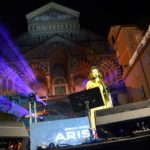 Stella della serata è stata Arisa. Il suo ingresso in scena scendendo la scala monumentale del Duomo, dopo la fase di riscaldamento affidata alla Nientedimeno Swig Band, ha dato il via ad un intenso spettacolo per voce e piano. L’artista ha incantato con la sua armoniosità vocale e ha coinvolto il pubblico con la sua ironia. Le prime note che hanno colmato la piazza dominata dalle inconfondibili volte della cattedrale di Sant’Andrea sono state quelle di “Meraviglioso amore mio”, continuando poi per una lunga carrellata di successi che hanno compreso tra l’altro i due brani vincitori del Sanremo (Controvento e Sincerità), la hit dell’estate “L’esercito del selfie” cantata, assieme a due fan dopo un simpatico siparietto col pubblico, passando poi per “La Notte”, “Ho cambiato i piani”, “Malamorenò”, “La Notte” ed altri brani fino alla conclusione con “Pace”. Durante il concerto, Arisa ha omaggiato Pino Daniele cantando “ ‘O ssaje comme fa ‘o core”. Il dono speciale dell’artista ad Amalfi, nella notte di Capodanno, è stata per sua stessa ammissione una delle primissime esecuzioni live di “Vasame”, il brano che fa da colonna sonora al film “Napoli Velata” di Ferzan Ozpetec. Non sono mancati i momenti di grande ironia, che hanno visto l’artista giocare col pubblico, pungolarlo con qualche battuta in napoletano, fino al simpatico siparietto col sindaco di Amalfi Daniele Milano al quale, durante l’improvvisazione dei ritornelli di alcuni di brani tradizionali di liscio non previsti dalla scaletta e proposti al pubblico dopo che un fan aveva urlato “facci ballare!”, ha chiesto in cambio in omaggio una villa ad Amalfi con vista sul mare.