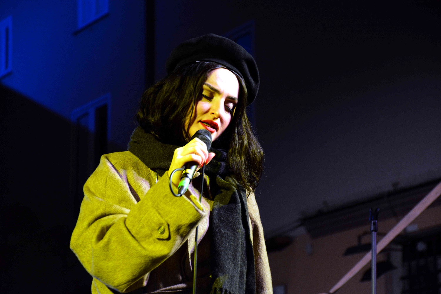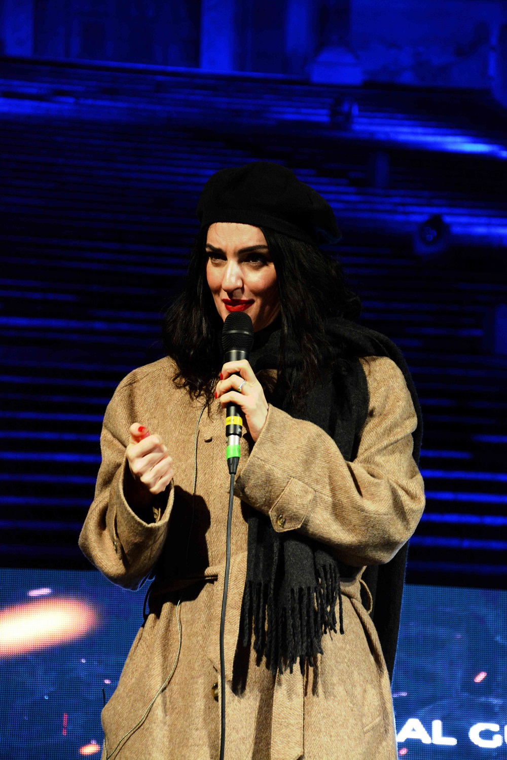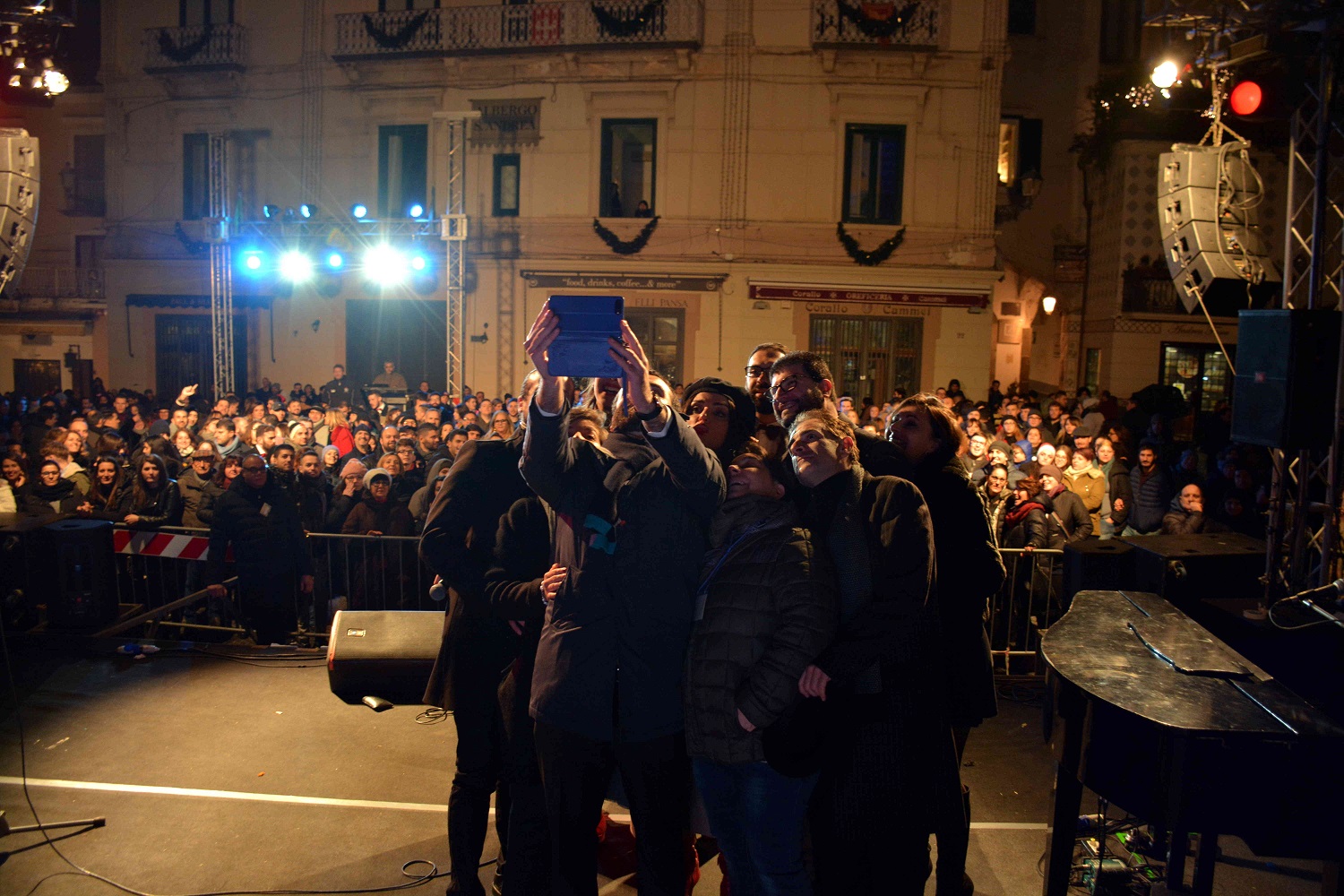 Stella della serata è stata Arisa. Il suo ingresso in scena scendendo la scala monumentale del Duomo, dopo la fase di riscaldamento affidata alla Nientedimeno Swig Band, ha dato il via ad un intenso spettacolo per voce e piano. L’artista ha incantato con la sua armoniosità vocale e ha coinvolto il pubblico con la sua ironia. Le prime note che hanno colmato la piazza dominata dalle inconfondibili volte della cattedrale di Sant’Andrea sono state quelle di “Meraviglioso amore mio”, continuando poi per una lunga carrellata di successi che hanno compreso tra l’altro i due brani vincitori del Sanremo (Controvento e Sincerità), la hit dell’estate “L’esercito del selfie” cantata, assieme a due fan dopo un simpatico siparietto col pubblico, passando poi per “La Notte”, “Ho cambiato i piani”, “Malamorenò”, “La Notte” ed altri brani fino alla conclusione con “Pace”. Durante il concerto, Arisa ha omaggiato Pino Daniele cantando “ ‘O ssaje comme fa ‘o core”. Il dono speciale dell’artista ad Amalfi, nella notte di Capodanno, è stata per sua stessa ammissione una delle primissime esecuzioni live di “Vasame”, il brano che fa da colonna sonora al film “Napoli Velata” di Ferzan Ozpetec. Non sono mancati i momenti di grande ironia, che hanno visto l’artista giocare col pubblico, pungolarlo con qualche battuta in napoletano, fino al simpatico siparietto col sindaco di Amalfi Daniele Milano al quale, durante l’improvvisazione dei ritornelli di alcuni di brani tradizionali di liscio non previsti dalla scaletta e proposti al pubblico dopo che un fan aveva urlato “facci ballare!”, ha chiesto in cambio in omaggio una villa ad Amalfi con vista sul mare.