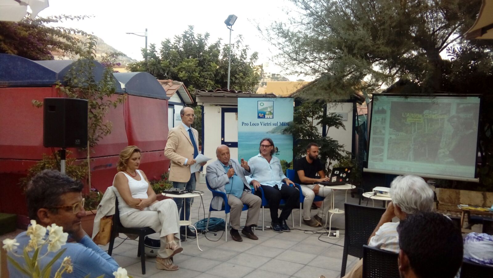 Dopo aver trascorso la giornata sulla spiaggia del Lido California dei Fratelli Enzo e Filippo Tortora, a Marina di Vietri Sul Mare, alcuni bagnanti che stavano andando al bar o, semplicemente, volevano godere dell’ombra e del fresco degli alberi piantati circa sessant’anni fa dal compianto Antonio Tortora, che caratterizzano lo storico lido vietrese, si sono fermati a guardare le immagini affascinati e suggestive dei più bei sentieri della Costiera Amalfitana, come il “Sentiero degli Dei”, proiettate su uno schermo da Vincent Langella, e commentate da Gabriele Cavaliere e Michele Inserra che hanno raccontato e svelato i segreti dell’ Altra Costiera, quella che a molti è sconosciuta e che è racchiusa nelle 5 mappe dei sentieri più caratteristici, affascinanti e suggestivi dell Costiera Amalfitana:” 100 passeggiate che partendo da Vietri Sul Mare, arrivano fino a Positano e Punta Campanella. C’è anche una mappa con i sentieri di Capri” ha spiegato Michele Inserra, dottore Agronomo, consulente del “Gal Terra Protetta” e guida ambientale escursionistica che ha ricordato che in Costiera Amalfitana ci sono montagne molto alte: ” La cima del Monte Sant’Angelo a Tre Pizzi è alta 1444 metri ed è ad un chilometro dal mare. Non ci sono posti così in tutto il mondo”. Il dottor Inserra ha anche spiegato che sui Monti Lattari ci sono tante piante autoctone, alcune molto rare: ” L’orchidea selvatica è un’ eccellenza botanica rarissima” e animali unici:” Le vacche ageroline: una specie endemica che si trova solo sulle montagne tra Agerola a Vico Equense”. Anche nella Valle delle Ferriere c’è una natura unica:” C’è una riserva naturale dove ci sono delle felci preistoriche e una pianta carnivora: la Pinguicola Hirtiflora, entrambe protette”. Le mappe sono corredate da cartografie, notizie tecniche, indicazioni con i luoghi più belli e interessanti, anche dal punto di vista storico – artistico, da visitare. Durante la serata è stato presentato anche il libro di Luciano Pellecchia: ”24 Passeggiate in Costiera Amalfitana “ nel quale sono raccolte le 24 passeggiate più belle tra le oltre 100 presentate nelle mappe. Sia le mappe, sia il libro, fanno parte della collana “Cart&Guide”, edita dalle “Officine Zephiro” di Amalfi dell’Editore Gabriele Cavaliere che ha raccontato che sui sentieri della Costiera Amalfitana si possono praticare varie attività:” Oltre a fare trekking e trail, si possono fare arrampicate, yoga ed è possibile visitare anche un allevamento di rapaci con gufi reali e avvoltoi”. Cavaliere ha anche ricordato che sul “Sentiero degli Dei” alcuni gruppi musicali si esibiscono in concerti gratuiti da aprile a ottobre: ” Ad Agerola si organizza anche un concerto all’alba”. La presentazione è stata organizzata nell’ambito del quarto incontro della seconda edizione dell’iniziativa “Approdi d’Autore”, promossa dalla Pro Loco di Vietri sul Mare , presieduta dall’imprenditore Cosmo Di Mauro, con la casa editrice “Graus Editore”, di Pietro Graus, e con il patrocinio del Comune di Vietri sul Mare, nella persona dell’Assessore al Turismo Giovanni De Simone che ha ricordato che da sedici anni a Vietri viene organizzata la gara podistica “Vietri e Dintorni”:” Coordinata da Alberto Liguori, è inserita nel Campionato Provinciale di Corsa in Montagna. Vi partecipano centinaia di atleti che attraversano anche alcuni dei sentieri descritti nelle mappe Una manifestazione che ha l’obiettivo di promuovere e valorizzare il tesoro paesaggistico, ambientale e storico – artistico del territorio vietrese”. Alla serata è intervenuto il Sindaco di Furore, Raffaele Ferraioli che dal 1980 è sindaco di uno dei Borghi più belli d’Italia conosciuto nel modo come ” Il Paese dipinto” per gli oltre cento murales dipinti sui muri e sulle facciate delle case del paese. Ferraioli, che è stato anche Presidente della Comunità Montana Penisola Amalfitana, ha parlato anche del difficile rapporto che esiste tra agricoltura e turismo e ricordato che in Costiera Amalfitana persiste il problema della viabilità:” La 163 non è una strada, ma è un tratturo borbonico che oggi viene percorso anche da pullman di oltre dieci metri”. Ferraioli ha anche ricordato che nel 1995 è arrivato il marchio DOC in Costiera Amalfitana:” Una volta ottenuto il marchio di qualità si avviarono varie attività di produzione di vino sul territorio. Oggi in Costiera Amalfitana si producono vini di eccellenza. Siamo diventati la Franciacorta del Sud”. Ferraioli ha anche annunciato che a breve sarà inaugurato un bellissimo parco nel Comune di Furore progettato dalla professoressa Giulia Caneva, Professore Ordinario di Botanica Ambientale ed Applicata del Dipartimento di Scienze dell’Università di Roma Tre, dove il motivo ispiratore sarà la mitologia antica ed anche che a Furore, nel mese di settembre, sarà organizzato il “Volo dell’Angelo”:” Con un cavo d’acciaio si potrà scendere, sospesi nel vuoto, dall’alto del Vallone di Furore fino al fiordo, godendo del paesaggio da una visuale sicuramente unica”. Il Presidente della Pro Loco, Cosmo Di Mauro, ha ricordato che come Pro Loco:” Stiamo cercando di promuovere il turismo esperienziale: la sentieristica è sicuramente da incrementare sul nostro territorio”. Di Mauro ha anche spiegato che: ” I bagnanti che frequentano gli stabilimenti balneari di Vietri sul Mare possono prendere in prestito i libri messi a disposizione dalla casa editrice Graus Editore per leggerli sotto l’ombrellone ed anche inviare le loro recensioni sulla pagina facebook creata appositamente dalla Pro Loco”. Come ogni incontro della rassegna anche in questo caso è stato degustato un vino eccellente: il “Vitamenia” un rosato DOC prodotto da“ Le Vigne di Raito” di Patrizia Malanga:” E’ un rosato molto interessante che produco dal 2012” – ha spiegato la dottore